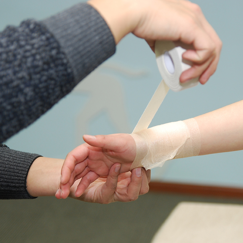 Haec taeniola versatilis non solum specimen praeventionis, sed etiam subsidia in recuperatione est. Sustenta carpi iniuria, tape applicari potest ad processum sanandum sustinendum. Lenis tamen securis tenaces in loco manere destinatur, etiam per sudorem et intensam activitatem, dum non labitur aut irritabit cutem. Fabrica spirabilis pro airfluentia permittit, cutem commodam servans et ab humore nimio aedificationis liberam.